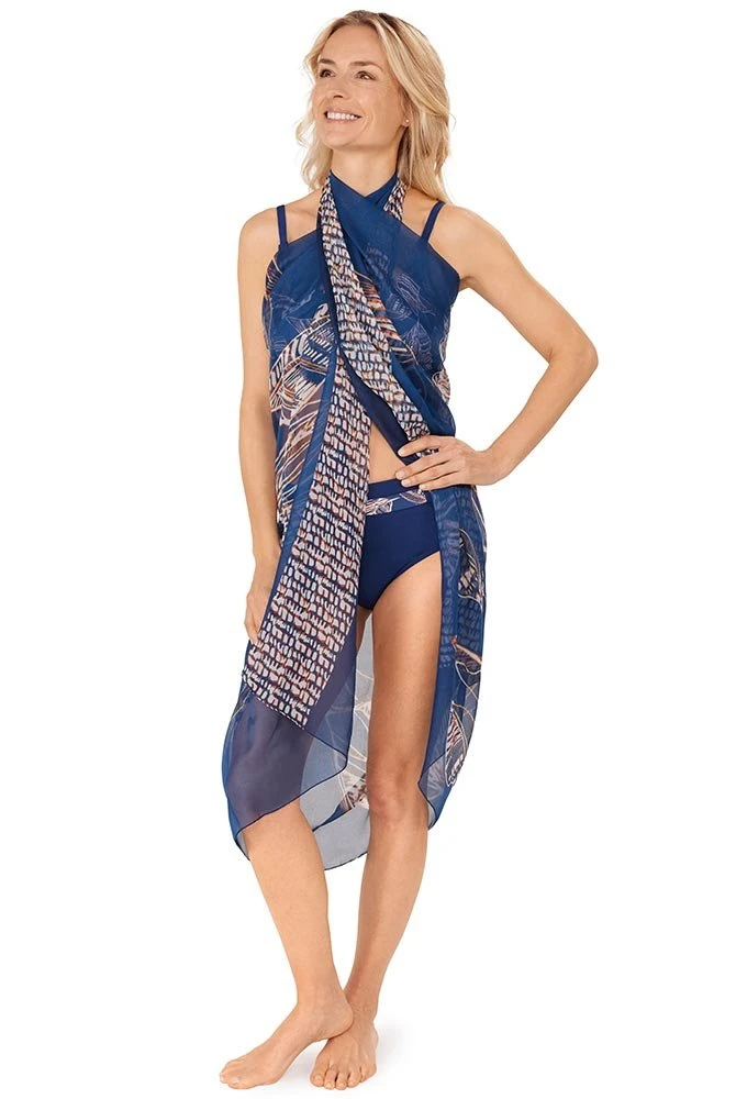 Pareo Lanzarote ist der perfekte Begleiter für Ihre Bademode. Der edel dunkelblau mit sanftem Blätterprint gehaltene Pareo von Amoena ist aus leichtem, schnelltrocknendem Material und verbindet modisches Design mit funktionaler Ausstattung. Der attraktive weiche Pareo ist der perfekte Begleiter für Ihren Urlaub, denn er strahlt fantasievolle Eleganz aus. Tragen Sie den wunderschönen Pareo zu Ihrem Badeanzug oder Bikini auf dem Weg zum Pool oder im Strandbad.