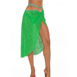 Der knielange Pareo aus schnelltrocknender Microfaser von Pin-Up Stars hat Laser-Cut Kanten und Details aus Häkelspitze. Diese Ergänzung zu Bademode ist assymetrisch geschnitten und kann mit einem gehäkelten Bindegürtel (abnehmbar) getragen werden.