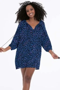 - mit Leo-Print in leuchtendem Blau überzeugt Tunika Papanui von Rosa Faia