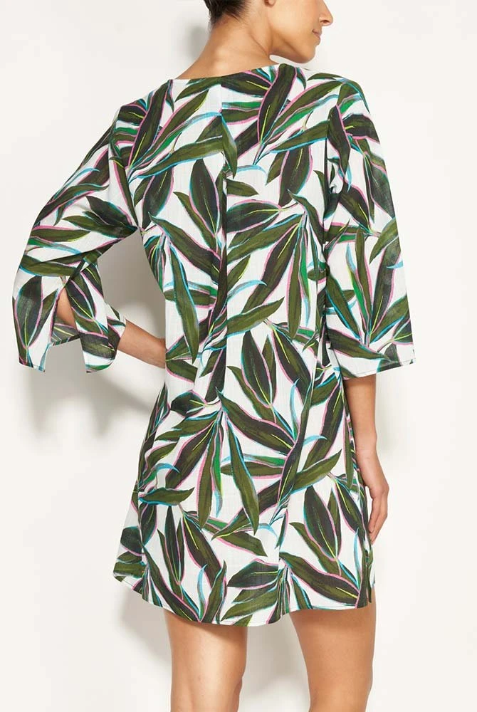 Aus fließendem leichten Baumwollstoff mit wunderschönem Blätterdesign überzeugt Tunika Green Leaves selbst im heißesten Sommer als Begleiterin für Ihren Urlaub. Leicht und luftig fällt der lockere, in herrlichen Grüntönen gemusterte Stoff schön schwingend und umspielt schmeichelhaft Ihren Körper. Die Tunika von Xanadu Beach endet in der Länge kurz über dem Knie. Ein modischer V-Ausschnitt akzentuiert Ihr Dekolleté. Ob als Strandtunika oder leichtes Kleid für heiße Sommertage zu Hause oder im Garten – mit unserer Tunika in Top Qualität sind Sie perfekt gekleidet und bestens vorbereitet für sonnige Sommertage.