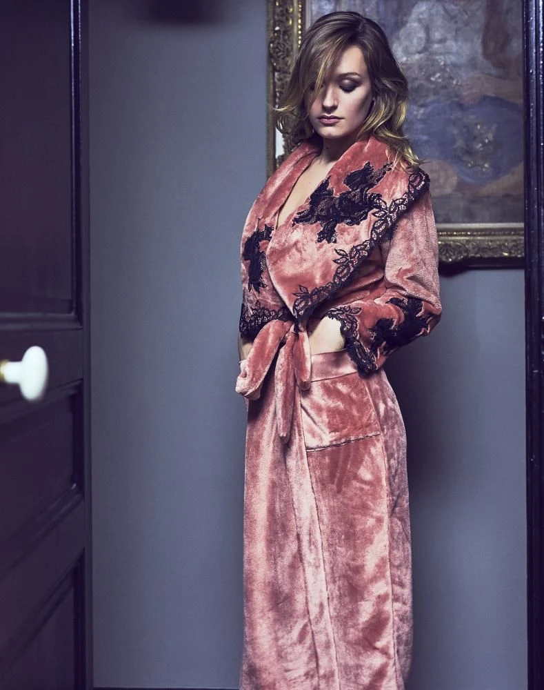 Plüsch-Hausmantel Freda mit Spitze von Marjolaine